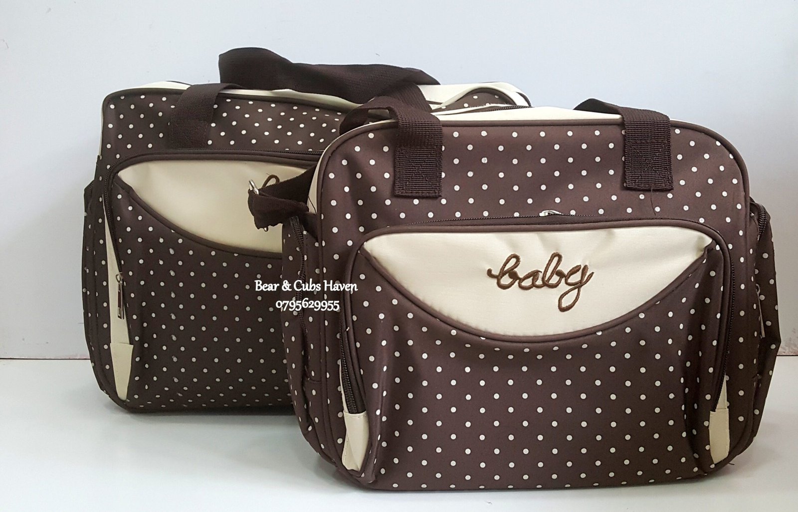 This is a great quality diaper bag comes in 3 pieces big bag, small bag and changing mat