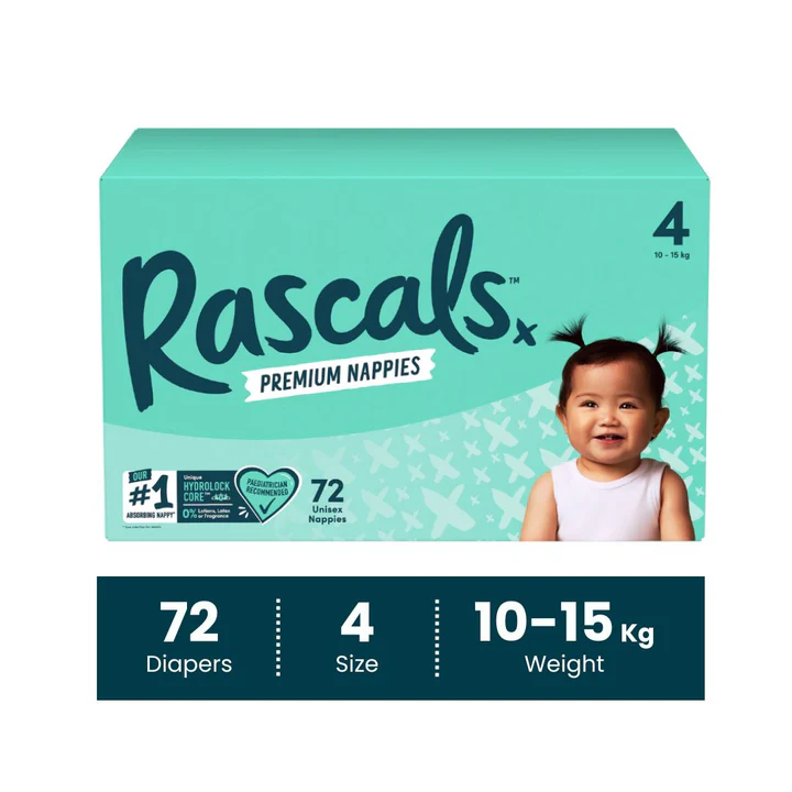 Rascals Premium Baby Tape Diapers Jumbo Box – Size 4, 10-15 kg, 72 Count